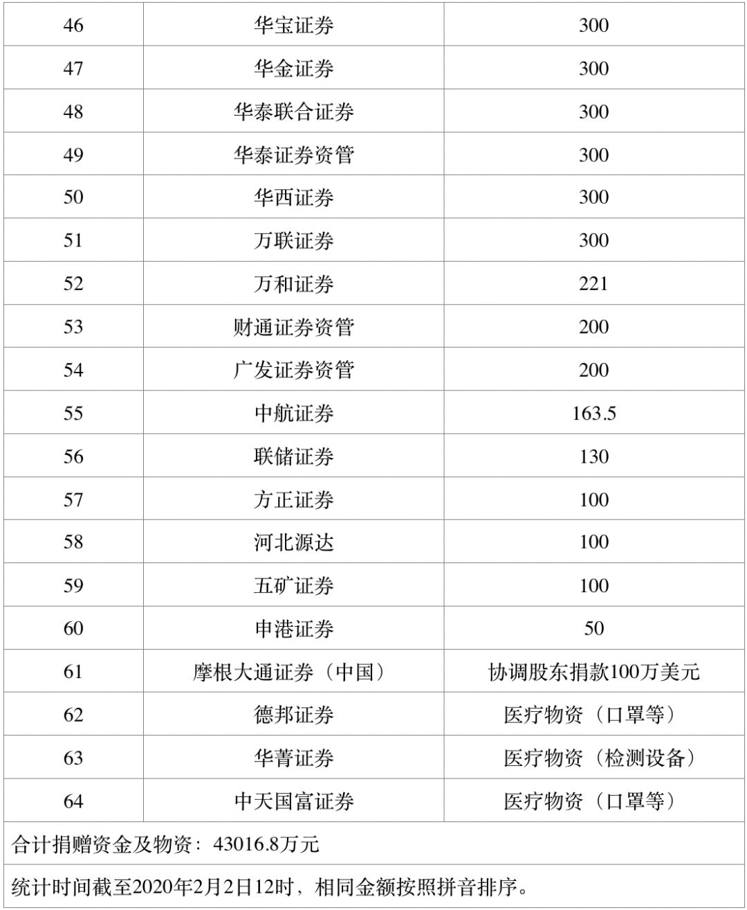 证券行业抗击疫情在行动 64家会员单位捐款捐物超4.3亿元
