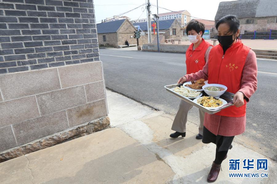 2月12日大年初一,山东省荣成市斥山街道盛家村“暖心食堂”的志愿者为留守老人送午饭。新华社发(王福东 摄)