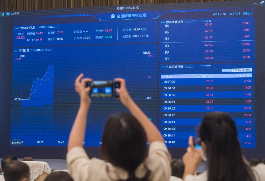 7月16日在武汉拍摄的全国碳排放权交易实时信息画面。 新华社记者肖艺九 摄
