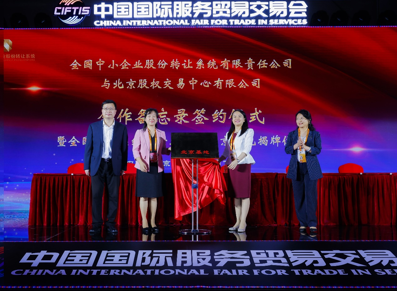 中证网讯(记者 昝秀丽)中国证券报记者9月7日从北京股权交易中心获悉,在当日召开的中国国际服务贸易交易成果发布会上,全国中小企业股份转让系统有限责任公司(以下简称全国股转公司)与北京股权交易中心有限公司签署合作备忘录,并举办全国股转系统(新三板)北京基地揭牌仪式。