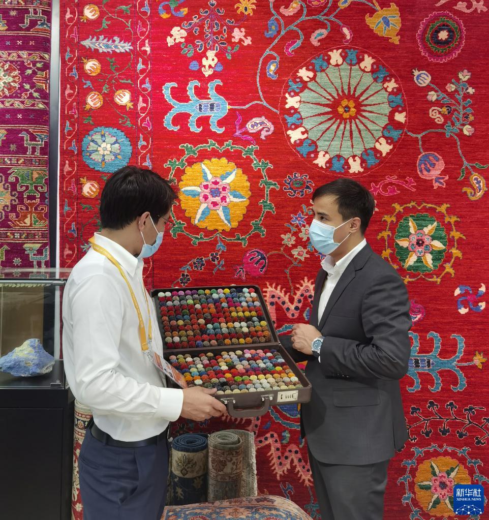 20多平方米的小展台,没有复杂的数字光影技术,只有一台笔记本电脑循环播放产品介绍。来自阿富汗的地毯商阿里说,只要卖出一张大幅的手工羊毛地毯,就能保障当地一个普通家庭近一年的生活。