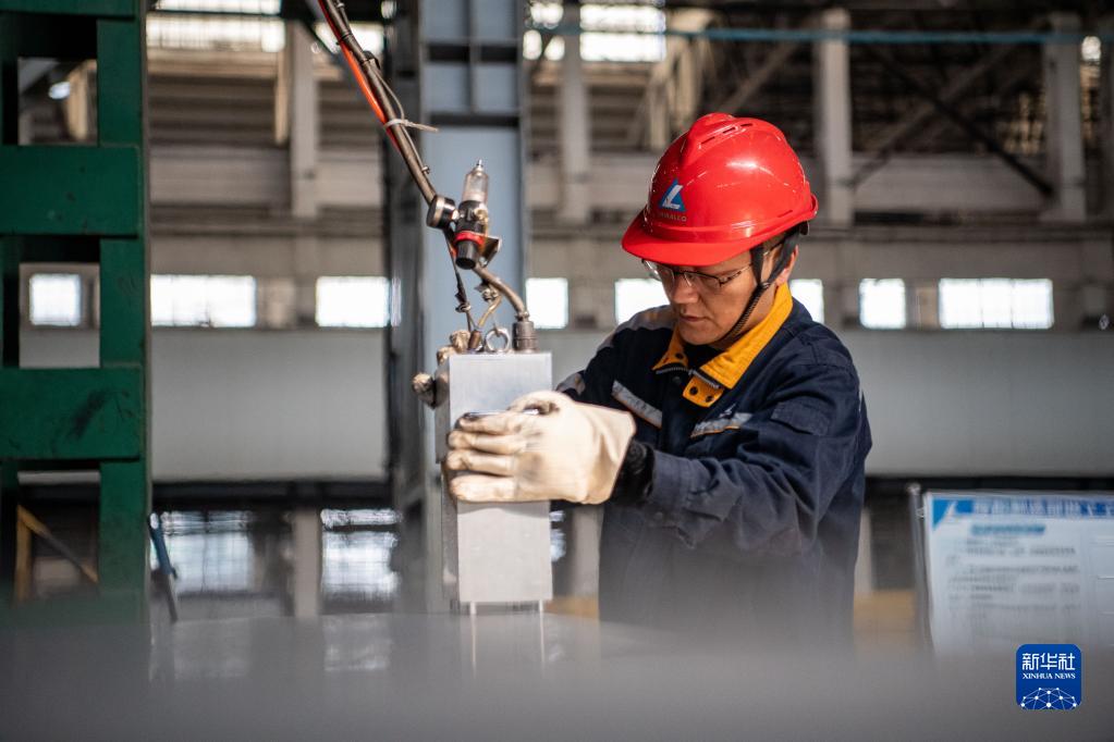 1月31日,在西南铝业(集团)有限责任公司生产车间,工人进行生产工作。新华社记者 唐奕 摄