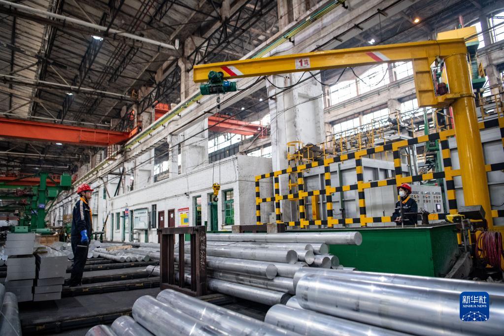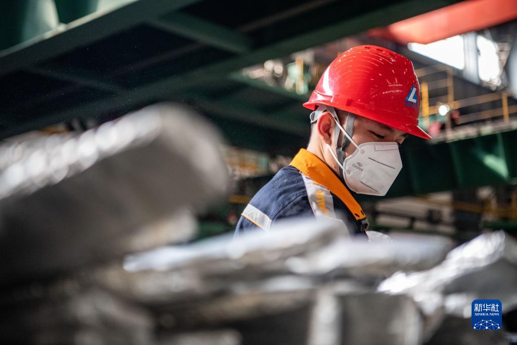 1月31日,在西南铝业(集团)有限责任公司生产车间,工人在整理铝材。新华社记者 唐奕 摄