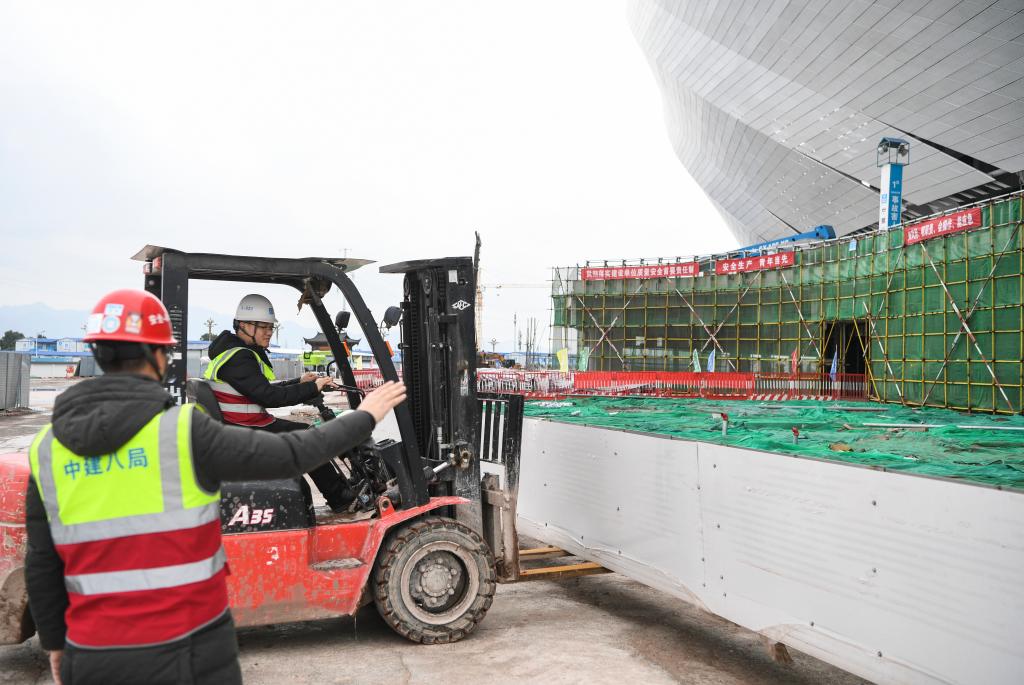 “前期的疫情防控给我们的生产组织带来了诸多挑战,我们采用多工种、多工序穿插作业的方式全力确保了施工进度;这两天我们主要在开展复工前的安全检查和工人返岗后的安全培训,10日起将全面复工。”项目承建方、中建八局西南公司龙兴足球场项目总工程师左廷忠说。