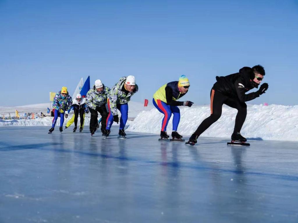 游客在库伦淖尔湖冰面上滑冰。(沽源县委宣传部供图)
