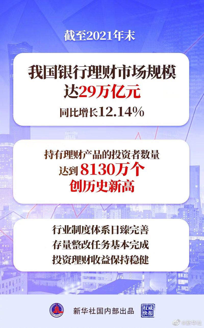 权威快报丨我国银行理财市场规模达29万亿元