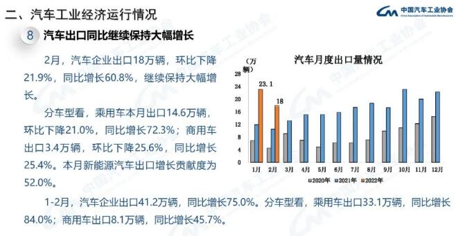 中汽协:2月份汽车销量同比上涨18.7% 新能源车增长184.3%