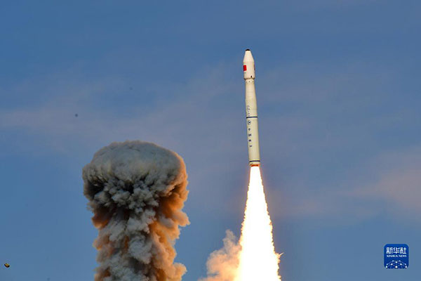 3月30日10时29分,我国在酒泉卫星发射中心用长征十一号运载火箭,成功将天平二号A、B、C卫星发射升空,卫星顺利进入预定轨道,发射任务获得圆满成功。新华社发(汪江波 摄)