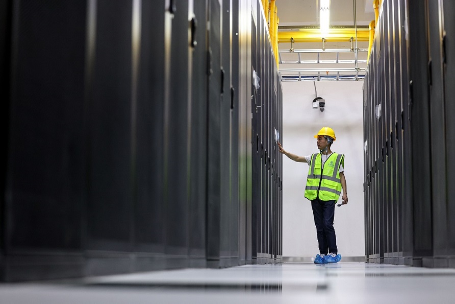 下图:5月24日,工作人员在中国移动贵阳数据中心机房内巡检。