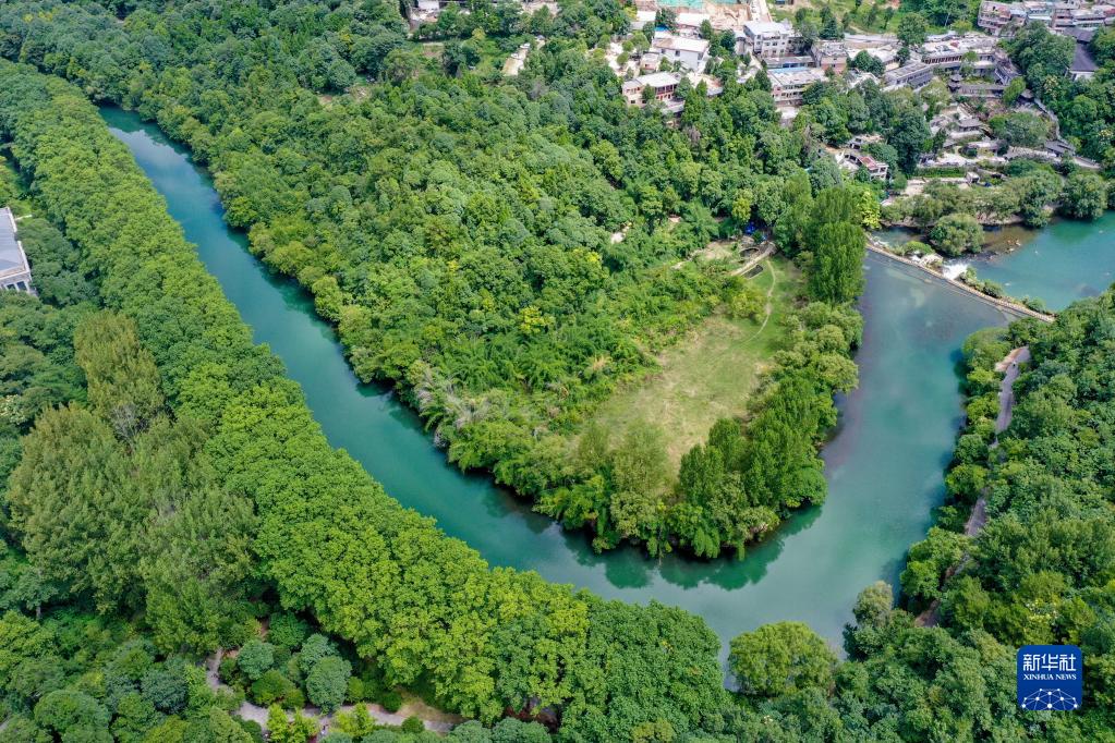 贵阳市花溪国家城市湿地公园黄金大道(2022年7月9日摄,无人机照片)。新华社记者 欧东衢 摄