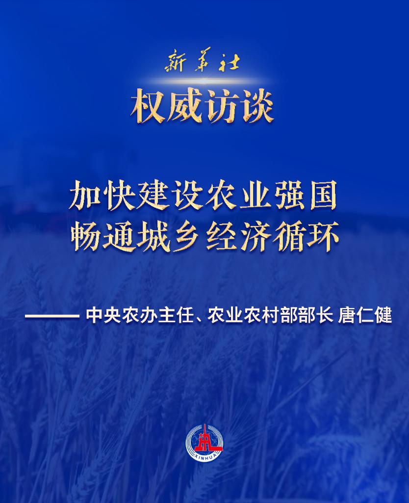 加快建设农业强国 畅通城乡经济循环——访中央农办主任、农业农村部部长唐仁健