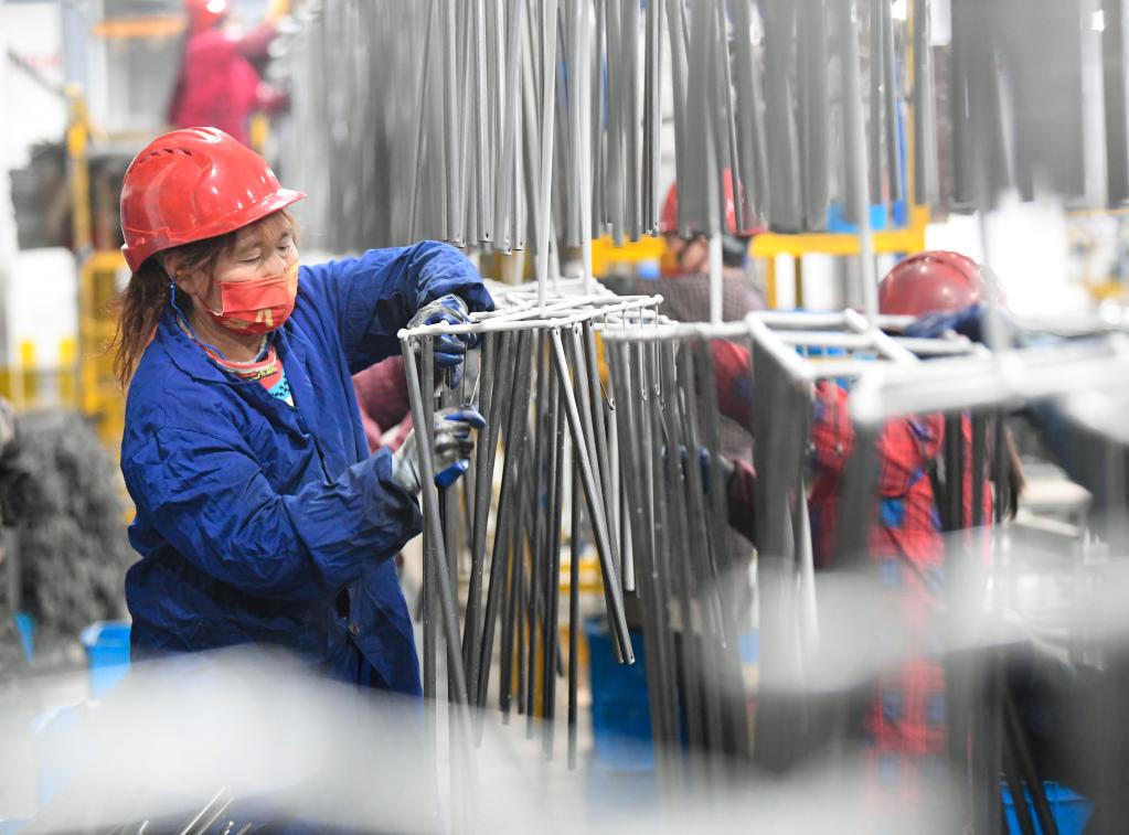 2月2日,在位于台州临海的浙江正特股份有限公司,工人在管材喷涂生产线上工作。新华社记者翁忻旸摄