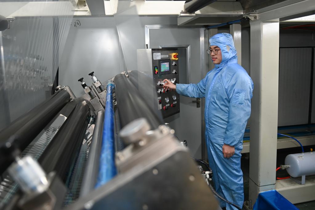工人在宁波瑞凌新能源科技有限公司的降温薄膜自动化生产车间作业(2月1日摄)。 新华社记者黄宗治摄