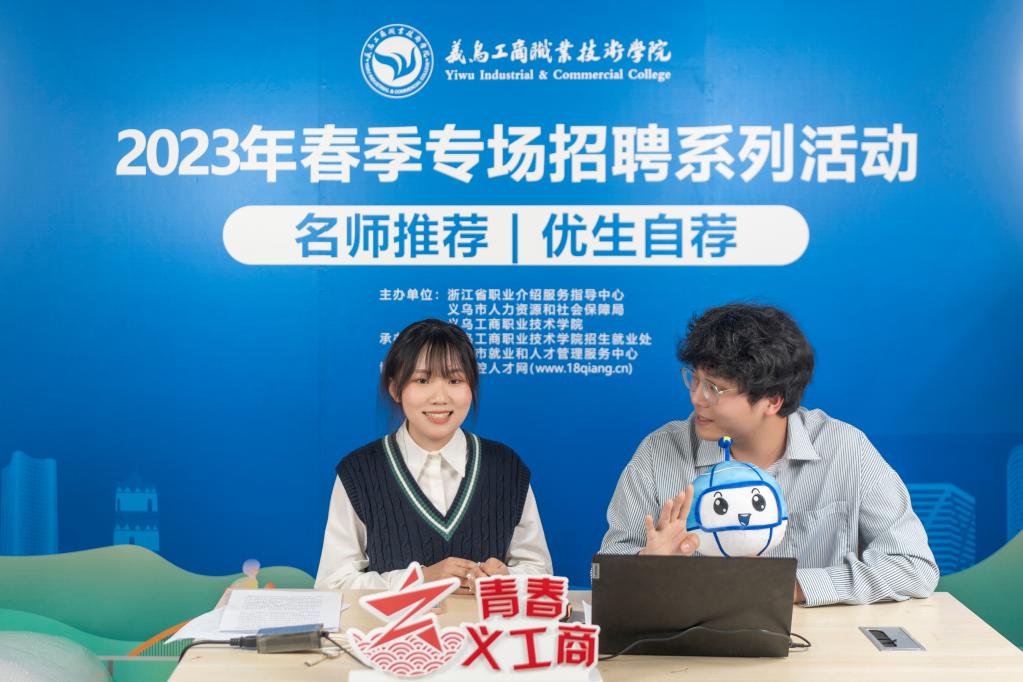 3月和4月是青年学生求职高峰期。近日,义乌工商职业技术学院创业学院电商企业专场招聘会现场,开展了“名师推荐”和“优生自荐”直播活动,开拓出助推大学生就业的新渠道。