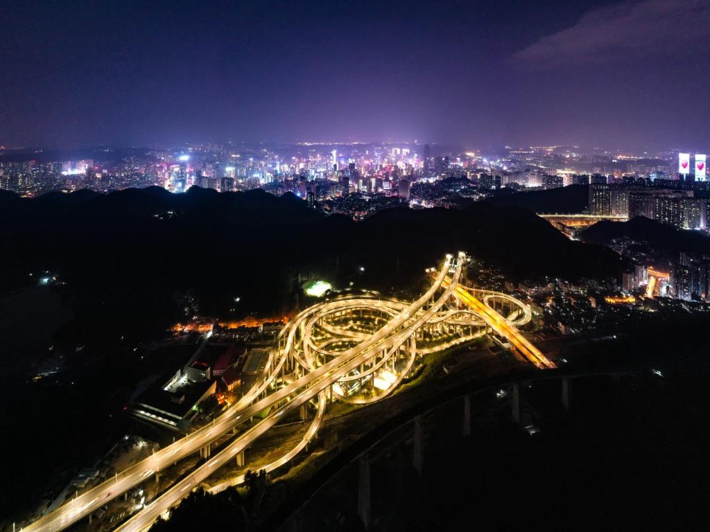 2月25日拍摄的贵阳黔春立交桥夜景(无人机照片)。新华社记者 刘续 摄