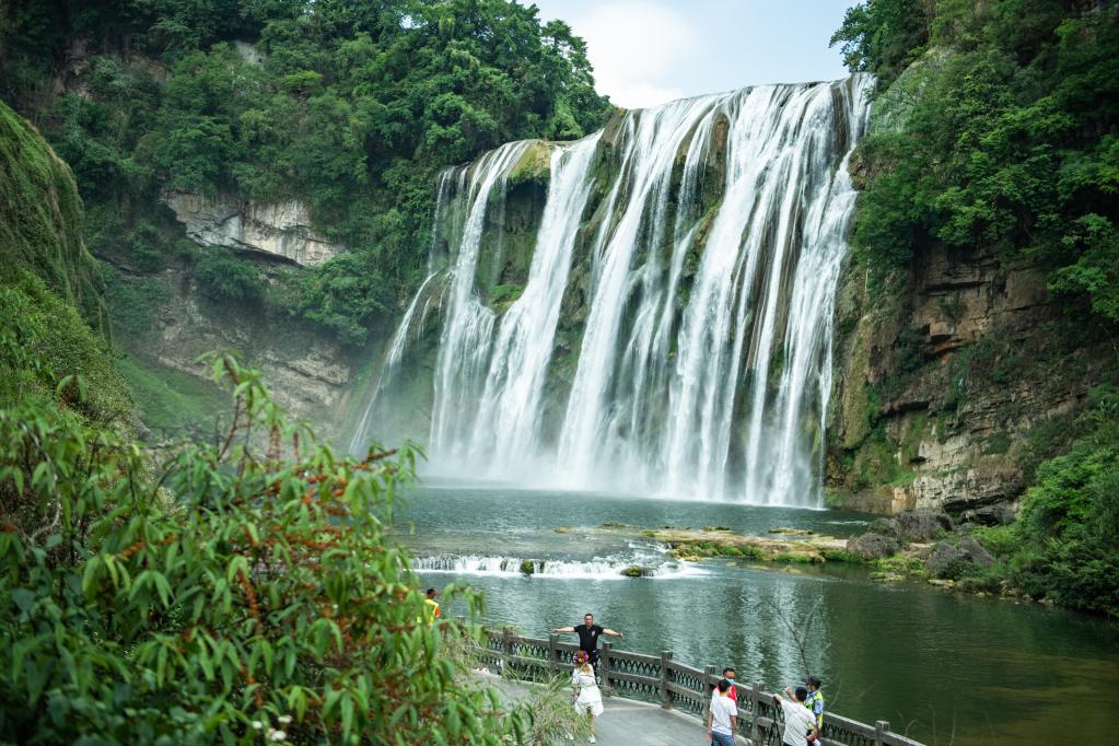 游客在黄果树大瀑布参观游览。新华社记者 陶亮 摄