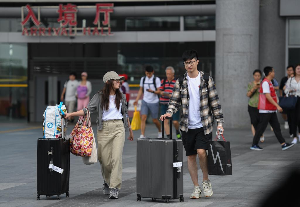 10月6日,旅客从深圳湾口岸入境。新华社记者 毛思倩 摄