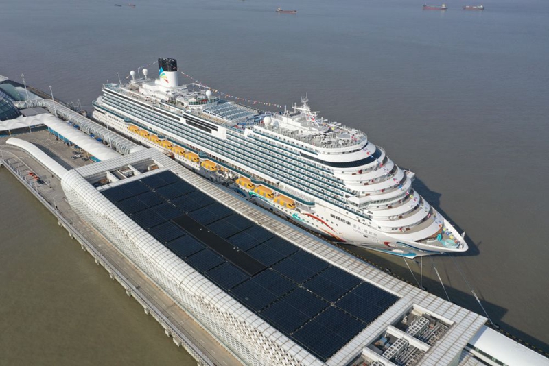 1月1日,“爱达·魔都号”停靠在上海吴淞口国际邮轮港(无人机照片)。