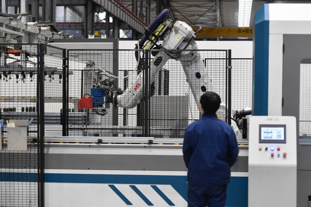 杭州西奥电梯数字工厂内的自动化智能生产线。新华社记者 黄宗治 摄