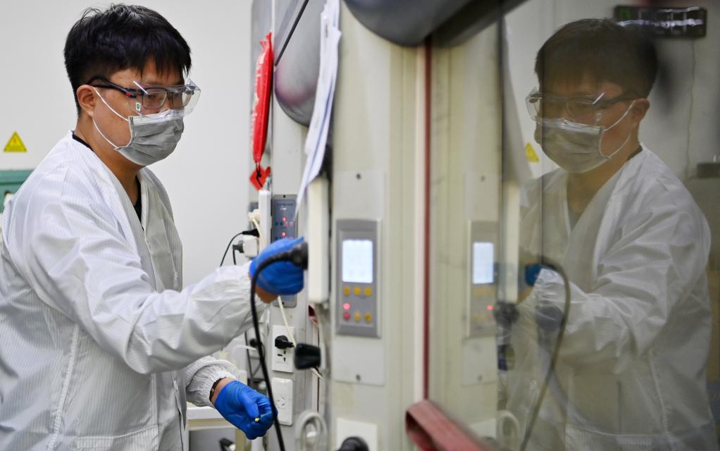 佟泽栋在南开大学化学学院的实验室内进行研究工作(4月26日摄),佟泽栋创立的公司也成为首批入驻天开高教科创园企业之一,在成果转化、科技金融、创业孵化等方面享受到一系列的帮扶。新华社记者 李然 摄