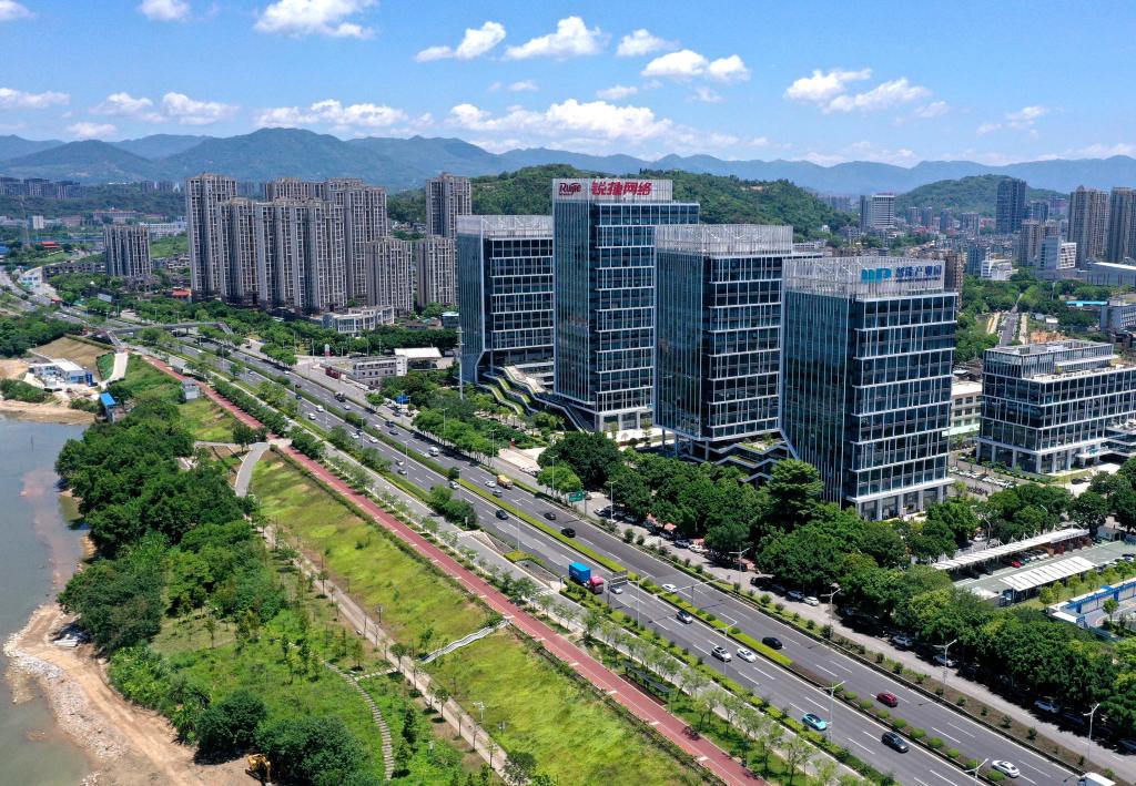 这是福州仓山智能产业园一角(8月1日摄,无人机照片)。福州市仓山区近年来大力发展以智能制造为主导的新一代信息技术产业,通过人才引进、科技创新、强化金融服务和落实财税等惠企政策,积极打造数字经济核心产业集聚区,推进创新链、人才链、产业链和资金链融合发展。新华社记者 魏培全 摄