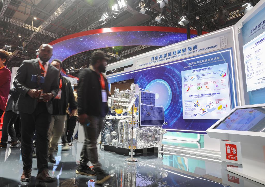 从分享进博购物车里的“大蛋糕”,到携手探索新质生产力的大机遇,中国与世界双向奔赴。本届进博会中国国家馆亦全方位展示本国因地制宜发展新质生产力的新成果,量子科学实验卫星“墨子号”模型、嫦娥六号模型等亮相。今年早些时候,中国自主研发的嫦娥六号搭载了来自法国、意大利、巴基斯坦等的国际载荷,彰显了中国的大国担当和开放合作精神。