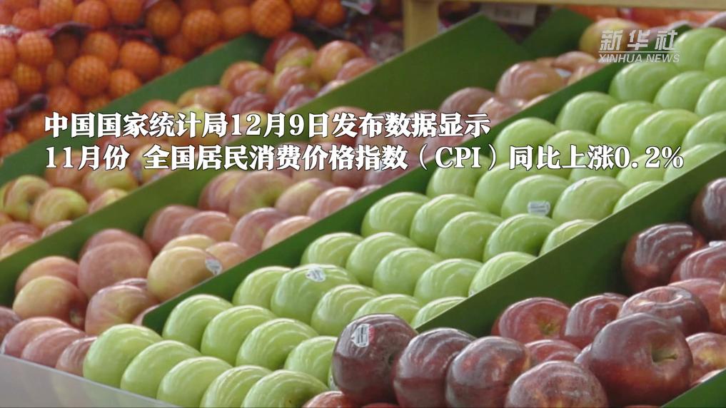 中国国家统计局12月9日发布数据显示,11月份,全国居民消费价格指数(CPI)同比上涨0.2%。