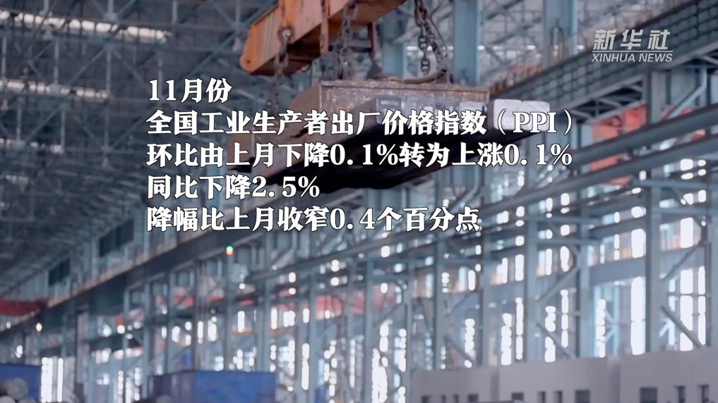 11月份,全国工业生产者出厂价格指数(PPI)环比由上月下降0.1%转为上涨0.1%;同比下降2.5%,降幅比上月收窄0.4个百分点。