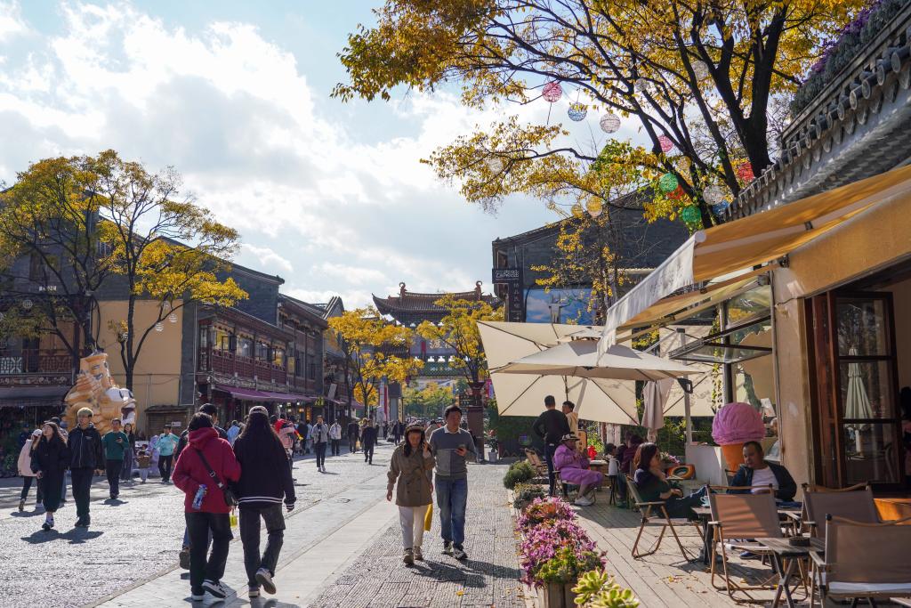 12月8日,游客在官渡古镇休闲游览。(新华社记者 王静颐 摄)