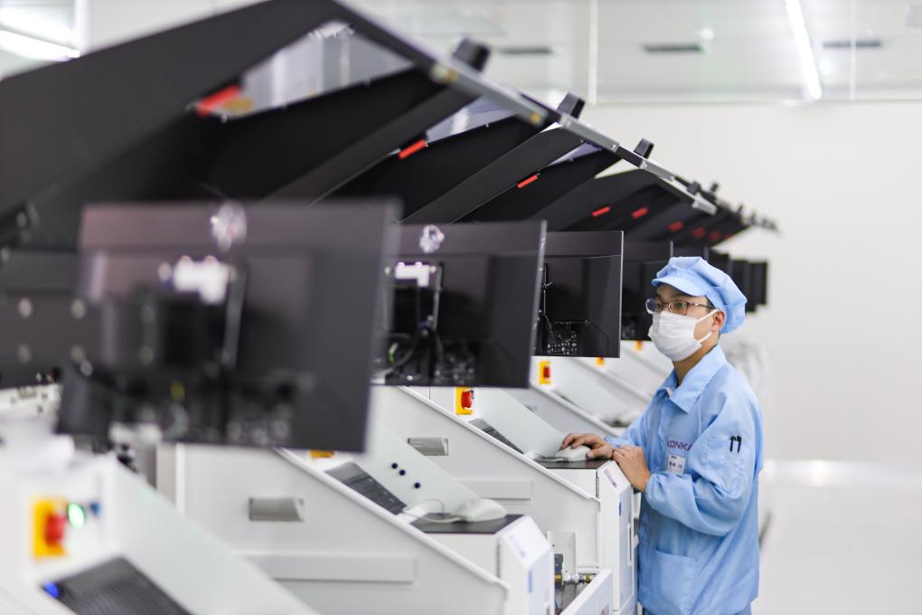 2024年3月14日,在位于重庆市璧山区的重庆康佳光电科技有限公司,工作人员在商显MLED生产线上作业。 新华社发(曾清龙 摄)