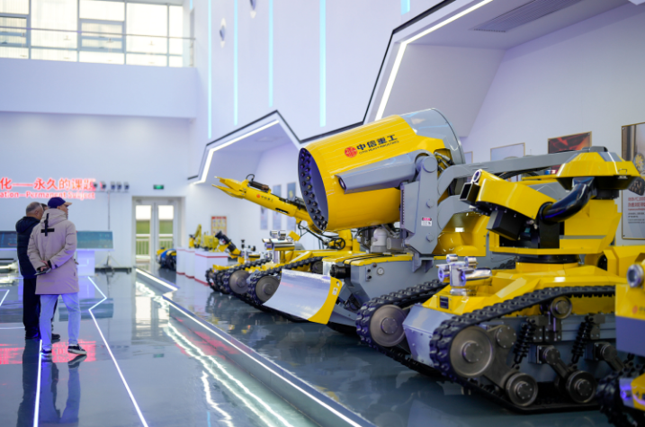 2月18日,客商在唐山国家高新技术产业开发区中信重工开诚智能装备有限公司展厅内参观。