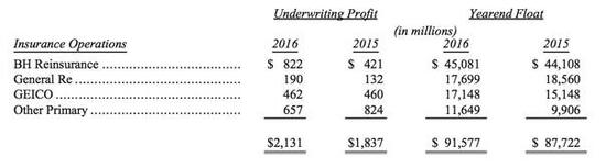 事后证明,这绝对是一个英明的决定:最初,我们预期这家公司将会在成立伊始的数年中出现重大亏损,因为在全球业务实施过程中,皮特·伊斯特伍德首先需要建立与业务相关的人员和基础设施等基本条件。相反的是,在公司成立之初的创业期间,皮特和他的团队就已经为公司贡献了显著的承保利润。2016年时,伯克希尔·哈撒韦公司的业务规模已增加40%,至13亿美元。显而易见,这家公司注定将会成为全球一流财险/人身伤害险公司(P/C insurers)中的佼佼者。