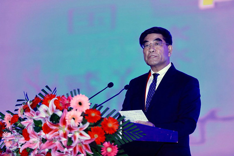 中石化原董事长傅成玉在首届国际资本领袖峰会上发表主旨演讲(摄/本报记者 车亮)