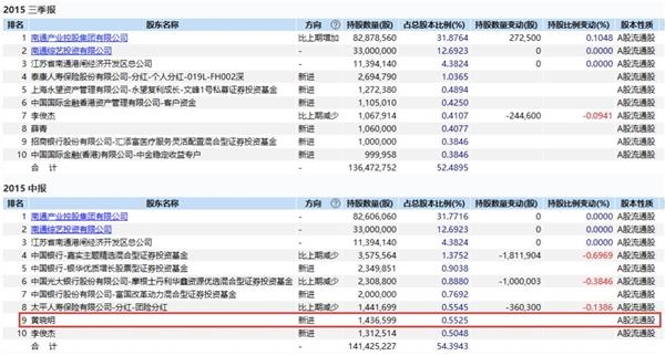而在精华制药2015年半年报中,前述4个账户均退出十大流通股东行列,转而出现的“黄晓明”账户,排在十大流通股东第9位。