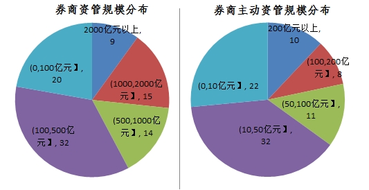 而在主动型资管的规模分布中,83家券商中50亿元规模以下的占据了54家,仅有18家公司主动型资产受托管理规模超过了100亿元:中信证券继续 以780亿元大幅领先同侪;华泰证券、广发证券以及国泰君安以572亿元、462亿元、446亿元紧随其后;申万宏源、华融证券、招商证券、海通证券、财通证券、光大证券等则均在200亿元左右。
