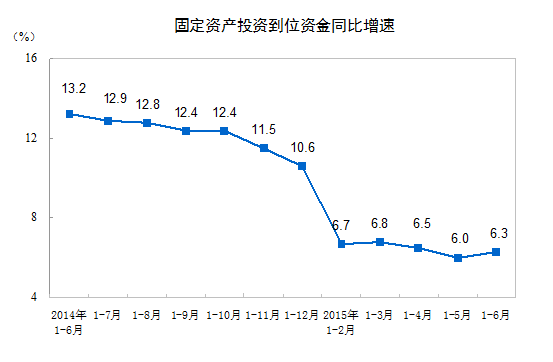 作者:佚名来源:中国网财经中国网财经7月15日讯 据国家统计局消息,2015年1-6月份,全国固定资产投资(不含农户)237132亿元,同比名义增长11.4%(扣除价格因素实际增长12.5%),增速与1-5月份持平。从环比速度看,6月份固定资产投资(不含农户)增长0.88%。