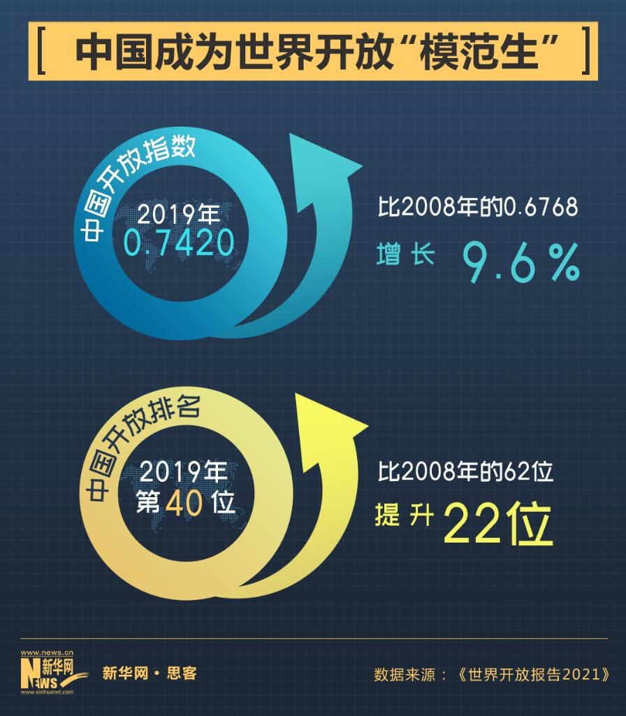 一届又一届的进博会,让人切身感受到“入世”给中国带来的巨变,但“开放”作为进博会一以贯之的理念始终不变。此次进博会上首发的《世界开放报告2021》显示,12年间,在全球129个主要经济体中,中国对外开放指数排名从62位上升到40位,上升22个位次。作为首个以进口为主题的国家级展会,从首届进博会中国宣布扩大对外开放的5方面措施,到本届进博会扩大高水平开放的4点举措,中国始终追求更高水平、更广范围的开放,重信守诺。