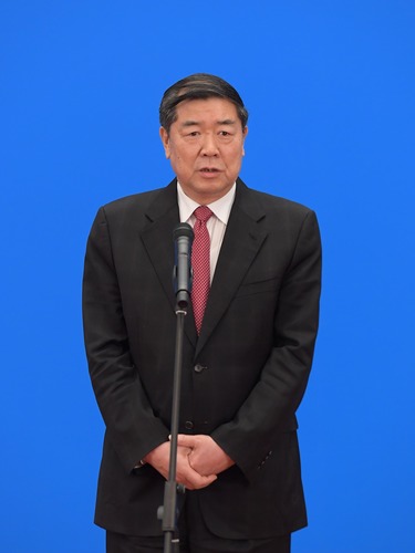 5月22日,第十三届全国人民代表大会第三次会议举行首场“部长通道”采访活动。这是国家发展和改革委员会主任何立峰通过网络视频方式接受采访。 新华社记者 李贺 摄