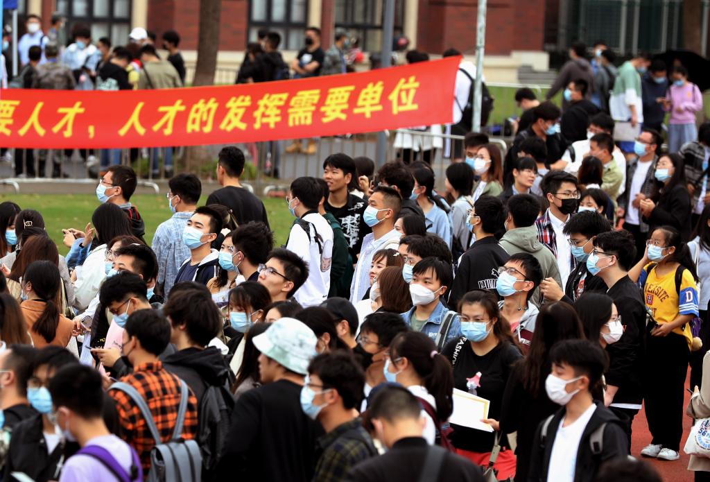 上海,2021年10月12日,2022届上海高校毕业生秋季校园招聘会在上海建桥学院举行。新华社记者 刘颖 摄
