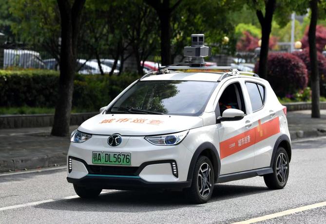 武汉首台智能5G城管巡逻车在街头巡逻。(受访者供图)