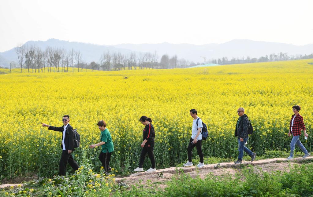 3月10日,游客在重庆广阳岛游览。新华社记者 王全超 摄