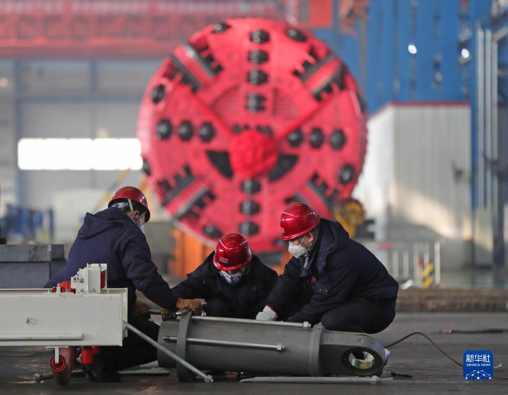 工人在沈阳北方重工集团有限公司盾构机分厂车间工作(2020年2月10日摄)。 新华社记者 杨青 摄