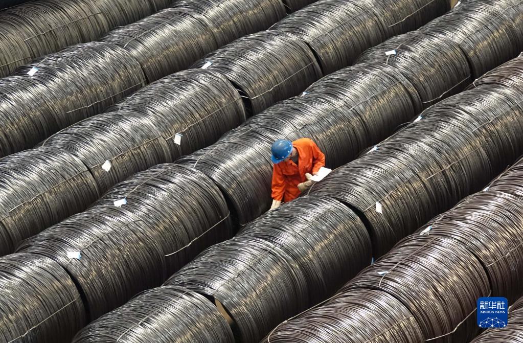 在辽宁省大连市东北特钢集团车间内,工作人员在核对产品(2017年5月15日摄)。新华社发(刘德斌 摄)