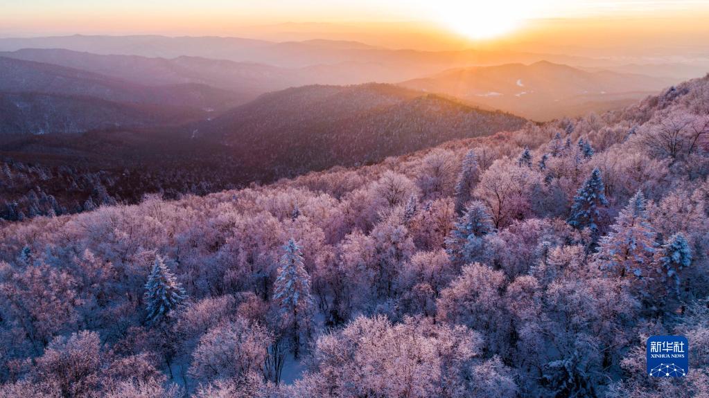 这是吉林省长白山林区雾凇景色(2018年1月13日摄,无人机照片)。新华社记者 许畅 摄