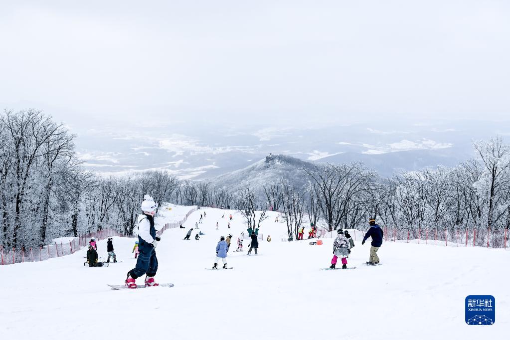 游客在吉林省吉林市万科松花湖度假区滑雪场滑雪(2022年2月12日摄)。新华社记者 颜麟蕴 摄