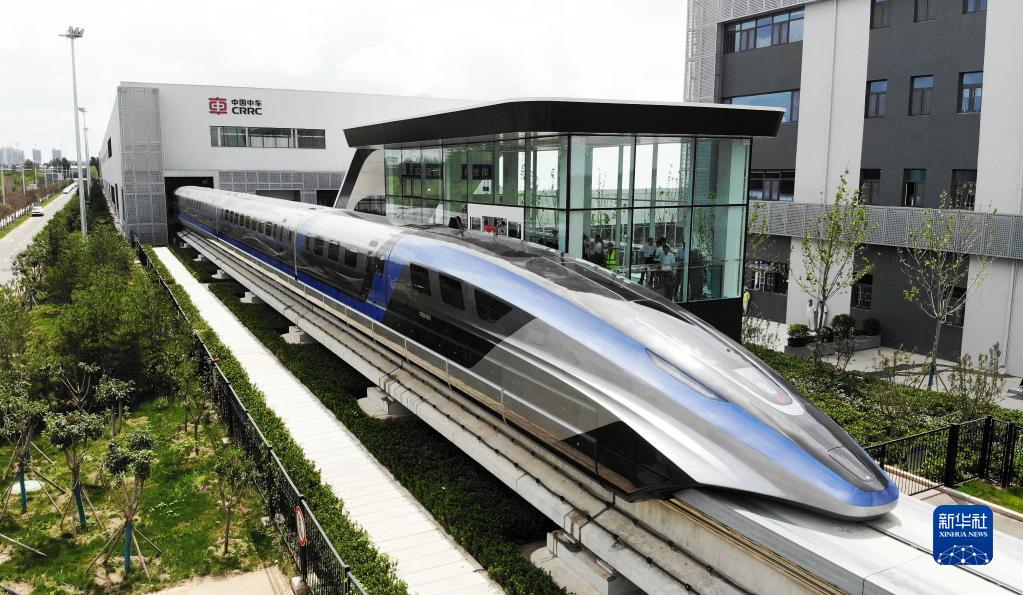 这是在山东青岛拍摄的时速600公里高速磁浮交通系统(2021年7月20日摄,无人机照片)。新华社记者 李紫恒 摄