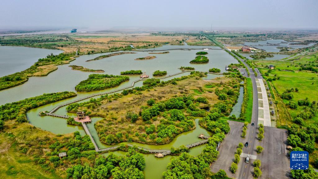 这是山东黄河三角洲国家级自然保护区景色(2021年5月13日摄,无人机照片)。新华社记者 郭绪雷 摄