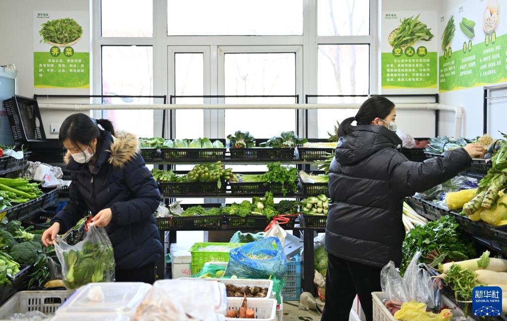 1月11日,居民在天津市西青区中北镇一小区的商店内选购蔬菜。新华社记者 李然 摄