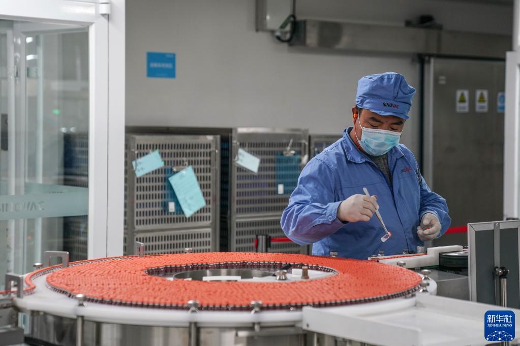 2021年7月8日,工作人员在北京科兴疫苗生产流水线上工作。新华社记者 彭子洋 摄