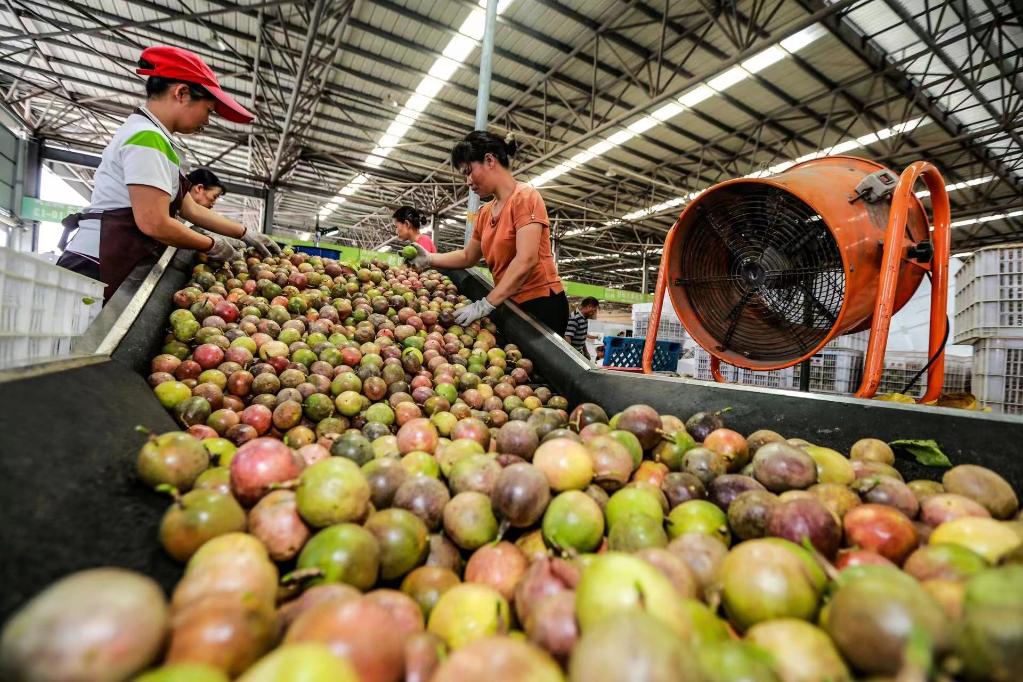在杨兴武所在的公司,工人们正在挑选百香果。受访者供图